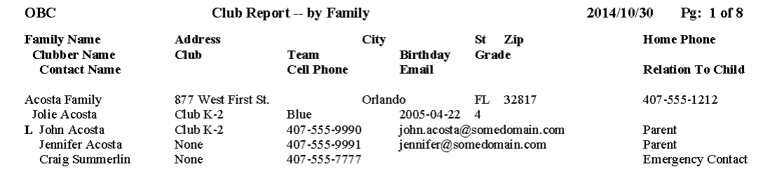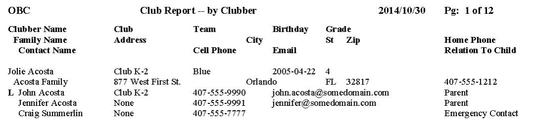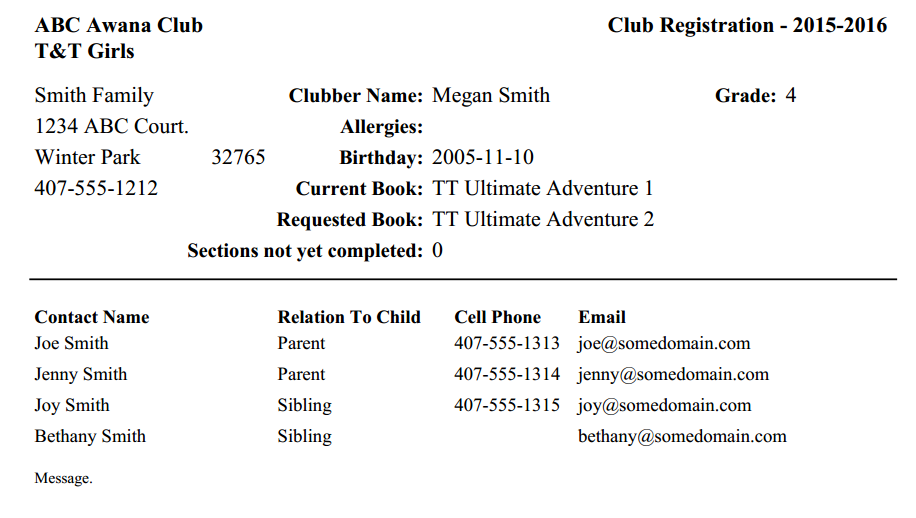 - View or print a report showing the clubber, parent, email address and messages status.