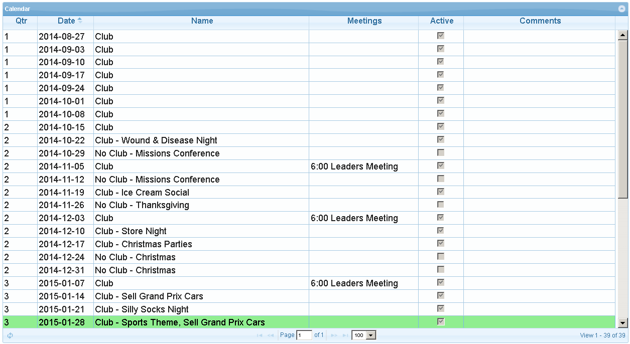 - Lessons are maintained from year to year so even if club leadership changes, you'll know what lessons were already given.