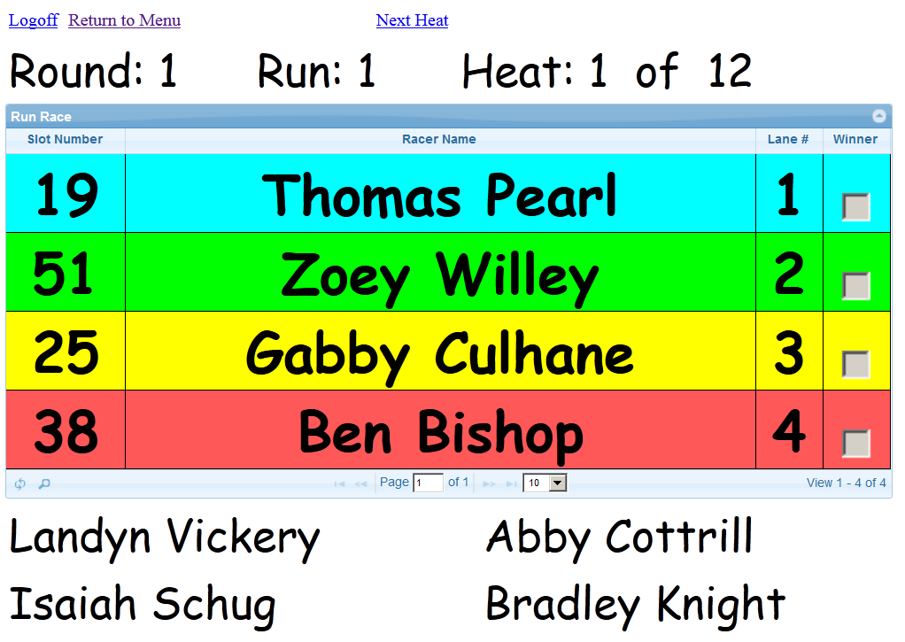- Next-up racers are automatically displayed to keep the race moving along.