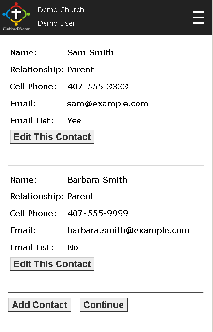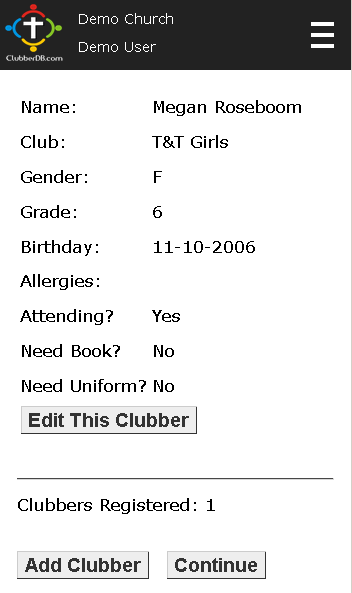 - The registration screen also allows them to add additional contact information, add new clubbers from the same family who had not attended club previously, and update personal information such as address, phone number, email address, emergency contacts and more.